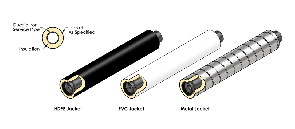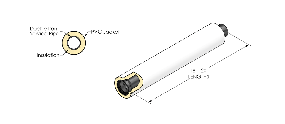 - Service Pipe: Ductile Iron (Push Joint, Mechanical Joint, Flanged)
