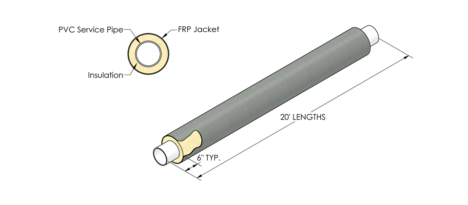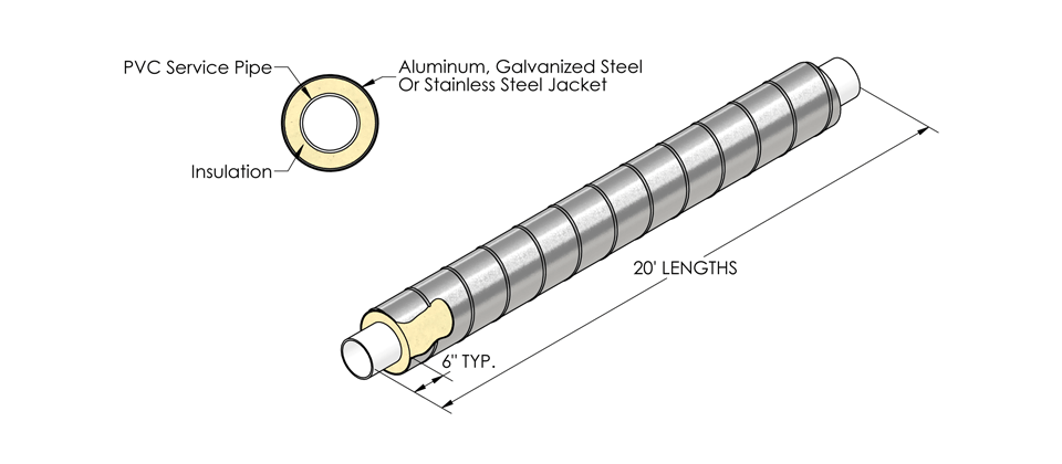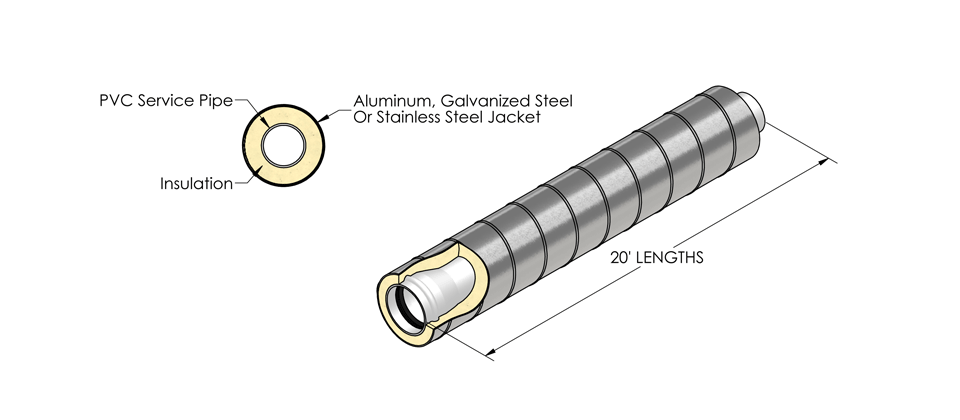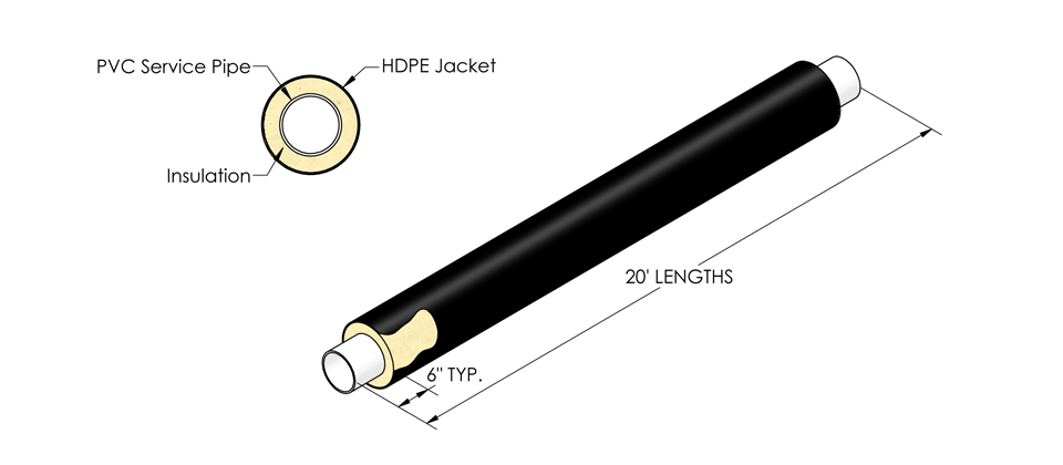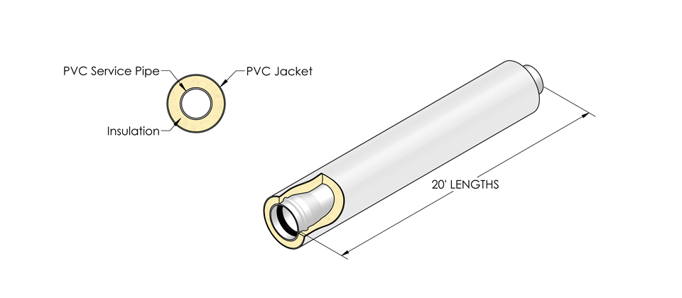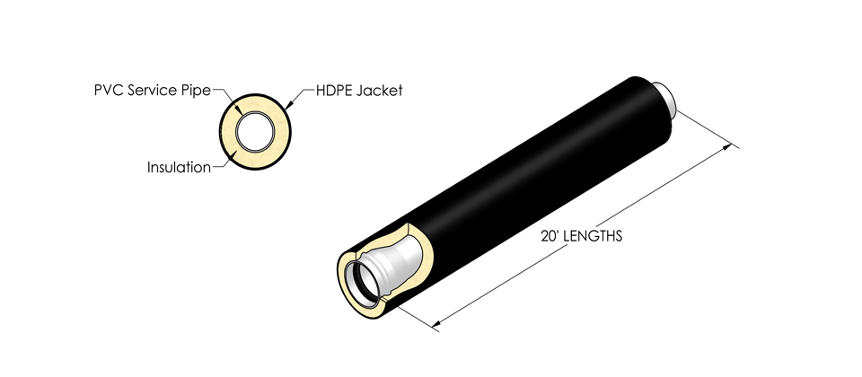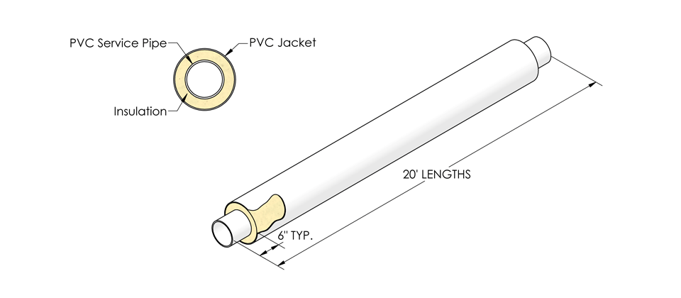 - Service Pipe: PVC Sch. 40, PVC Sch. 80, SDR-21, SDR-26, SDR-35