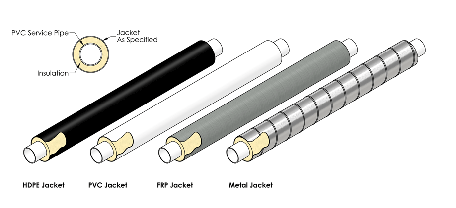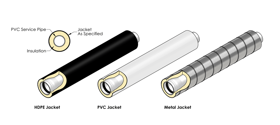 Field Joints for underground applications of gasketed joint pipe are to remain un-insulated to allow for expansion and contraction. Joints may be covered to keep out debris or moisture with an oversized sleeve and sealed with tape or heat shrink sleeve. Insulation at ends of pipe to be sealed with mastic or heat shrinkable end seal.